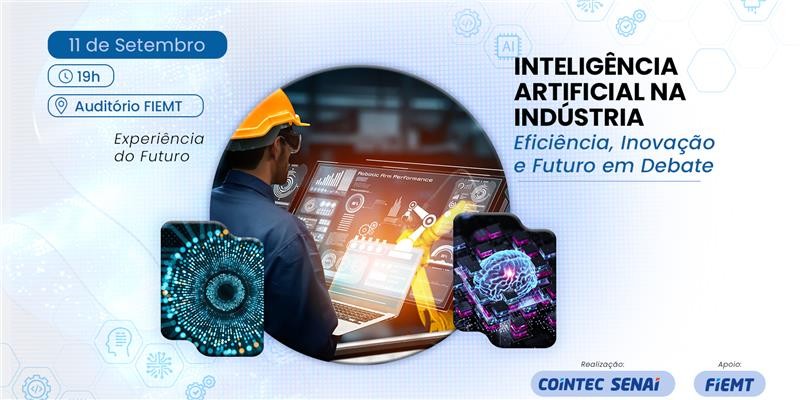 O Conselho Temático de Inovação e Tecnologia da Federação das Indústrias de Mato Grosso (Cointe/FIEMT) e o Serviço Nacional de Aprendizagem Industrial (SENAI-MT) realizam o evento “Inteligência Artificial na Indústria: eficiência, inovação e futuro em debate” no dia 11 de setembro.