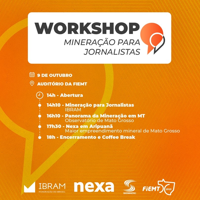 A Federação das Indústrias do Mato Grosso (FIEMT), em parceria com a Nexa, o Instituto Brasileiro de Mineração (Ibram) e o Sindiminério, promove o curso gratuito “Mineração para Jornalistas”, com o objetivo é aproximar a imprensa da atividade minerária e destacar seu papel no desenvolvimento socioeconômico.