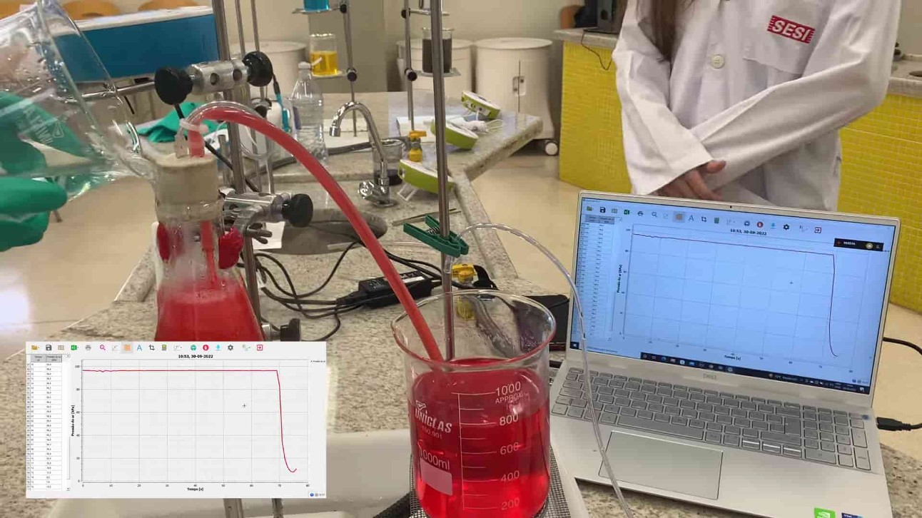 “A gente usa vários experimentos na hidrostática para mostrar a questão da profundidade e pressão do líquido, mas eu fui ver se a Labdisc já tinha algum material produzido sobre isso e não tinha”, explica a docente de Ciências da Natureza.
