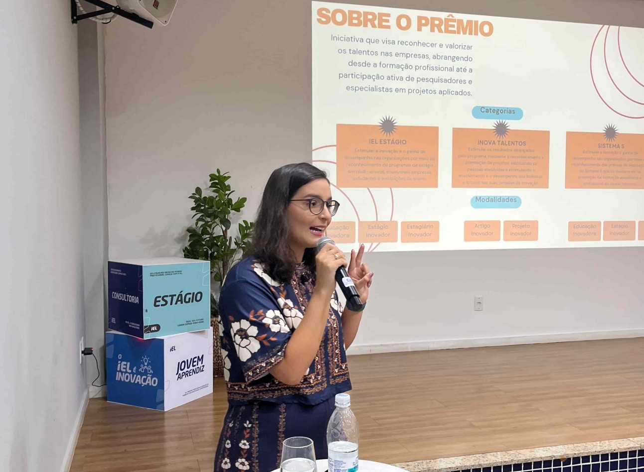 A oficina foi ministrada pela Analista de Desenvolvimento Industrial do IEL Nacional, Isabelle Melo, que conduziu os participantes por uma jornada prática de criação de projetos do zero, alinhando teoria, critérios de avaliação e aplicação. Segundo Isabelle, embora a estrutura tenha sido pensada no contexto do Prêmio IEL de Talentos, ela vai além da premiação. “Essa metodologia serve para diversos outros projetos e até para a vida profissional. É uma forma de gestão de projetos que ajuda a organizar ideias, definir objetivos e criar impacto”, explicou a Analista do IEL.