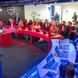 A visita incluiu os ambientes de Cibersegurança, Desenvolvimento de Sistemas e Redes, além da sala de Inteligência Artificial, onde foram apresentadas simulações de Realidade Mista e Aumentada. Alunos da FIRJAN SENAI também demonstraram soluções desenvolvidas na instituição, como um sistema de controle de vazão de água e um software de gestão de processos industriais.