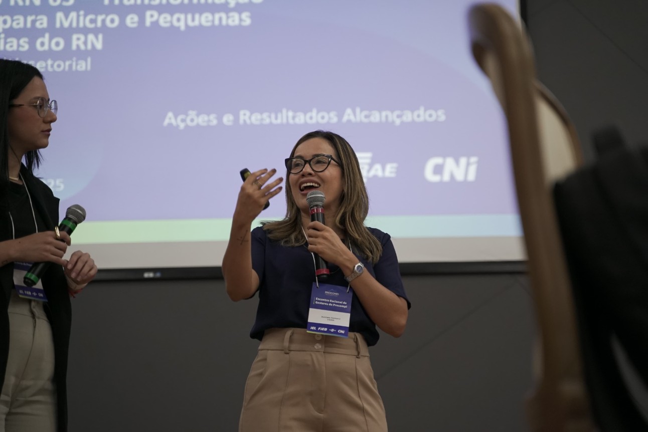 Na sequência, a gestoras da Federação das Indústrias do Estado do Rio Grande do Norte (FIERN), Kesiane Santana, e do Sebrae-RN, Ana Lívia, compartilharam o projeto multissetorial de transformação digital para micro e pequenas indústrias do Rio Grande do Norte. Com 31 empresas participantes e 54 pessoas capacitadas, abrangendo 13 setores industriais, o impacto foi imediato: