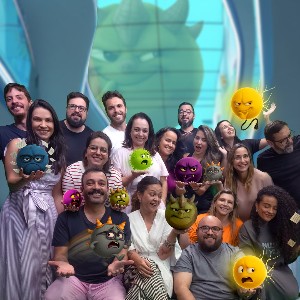 Essas carinhas ganharam cor, características e expressões com a ajuda da inteligência artificial, explica Gabriel Loureiro, do time de Digitais. “A inteligência artificial já faz parte do dia a dia e isso mudou muito o operacional para melhor. E, nesse caso, da campanha, eu tinha uma referência de um joguinho de videogame, que tem umas bolinhas, e a partir dessa referência desdobramos para os monstrinhos nesse formato”, conta Gabriel.