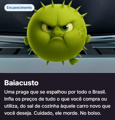 Baiacusto: chefe dessa turma da pesada, é a praga que infla os preços de tudo que compramos, usamos