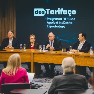A Federação das Indústrias de Santa Catarina (FIESC) lançou, na última quinta-feira (28), o desTarifaço, pacote de serviços gratuitos que inclui consultoria para novos produtos e mercados, suporte para acesso a crédito e incentivos públicos, além de capacitação para funcionários em situação de inatividade. O programa tem como foco indústrias exportadoras e trabalhadores impactados pelo aumento das tarifas de importação dos Estados Unidos.