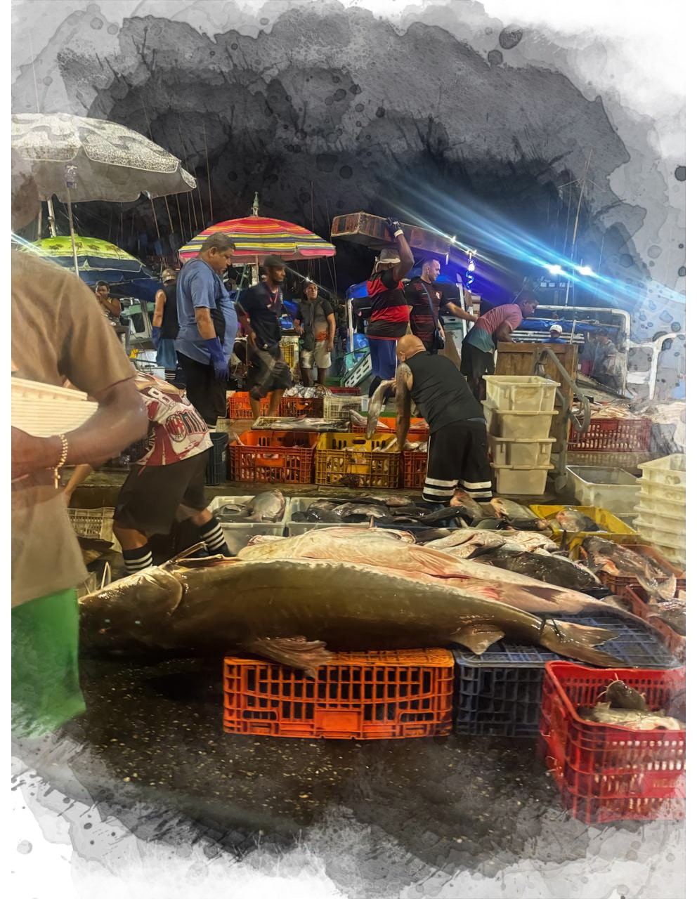 Em Belém, o afeto não termina quando a conta chega. Quando achávamos que a noite estava encerrada, aparece Diego, marido de Rayssa. Dois empregos, uma filha de um ano e o despertador marcado para as cinco da manhã não o impediram de oferecer um tour improvisado pelos principais pontos turísticos da capital paraense. Do banco do motorista, mostrou monumentos, contou histórias, explicou que, antes de entrar nas águas e na floresta, o certo é pedir permissão. No Mercado Ver-o-Peso, quase à meia-noite, sentimos o coração comercial da cidade bater, recebendo os pescados e o açaí que alimentariam turistas e moradores no dia seguinte.